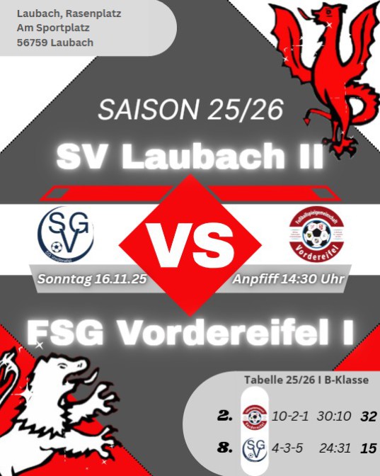 Das letzte Spiel des Jahres steht für unsere Erste an. Am Sonntag geht es zur Zweitvertretung des SV Laubach. Mit einem Sieg in diesem schweren Auswärtsspiel, könnte die Mannschaft von Dirk Freudendahl eine herausragende Hinrunde krönen.