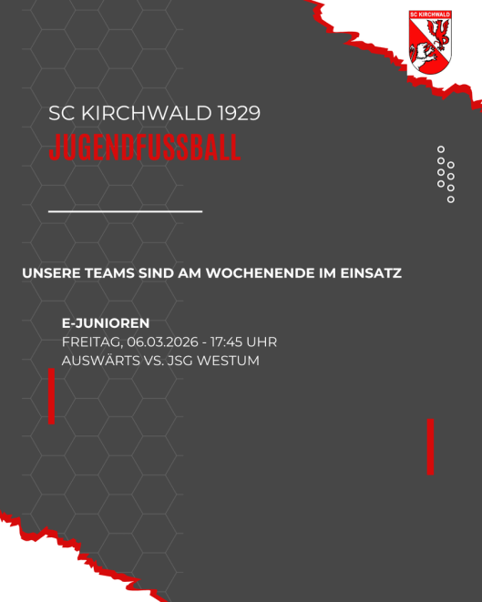 Für unsere D-Jugend geht es bereits am späten Freitagnachmittag nach Heimersheim, während unsere E-Jugend am Samstagmorgen früh aus den Federn muss um die Gäste vom Maifeld zu empfangen. Die F-Junioren gastieren für ihren Staffelspieltag am Sonntag in Hausen. Wir wünschen Euch viel Erfolg und hoffen auf zahlreiche Unterstützung.