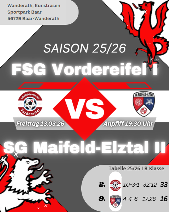 Die Zweite spielt Freitagabend in der Kreisliga C im Ahrtal und trifft auf den direkten Tabellennachbarn. Auch hier ein steht also ein sehr spannendes Duell an und wir freuen uns auch auswärts über Unterstützung für unsere Reserve bei diesem Spitzenspiel.